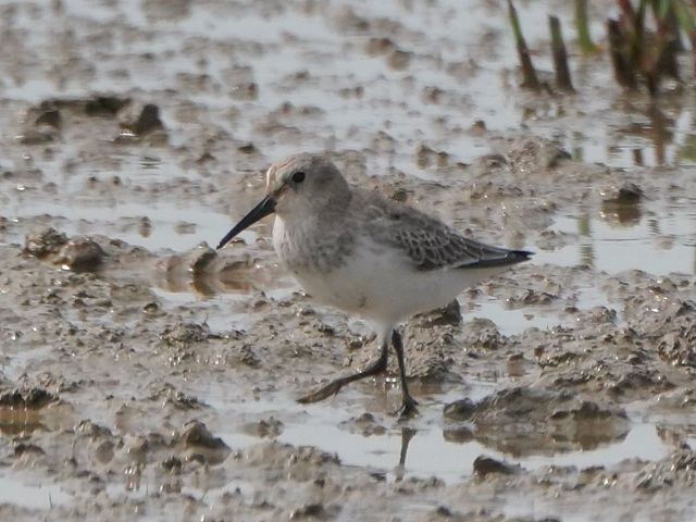 Both Dunlins, adult winter plumage. Note the rather plain face and short tibia; Curlew Sand should have a more pronounced hint of a supercillium and a longer tibia.