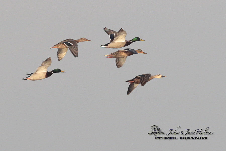 Four Mallard, one Spotbill