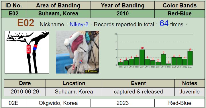 Common Redshank KV was ringed on 8-Nov-21. It was reported 19 times at Mai Po, twice at Shenzhen Futian. Last report 24-Nov-23.