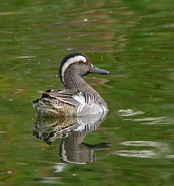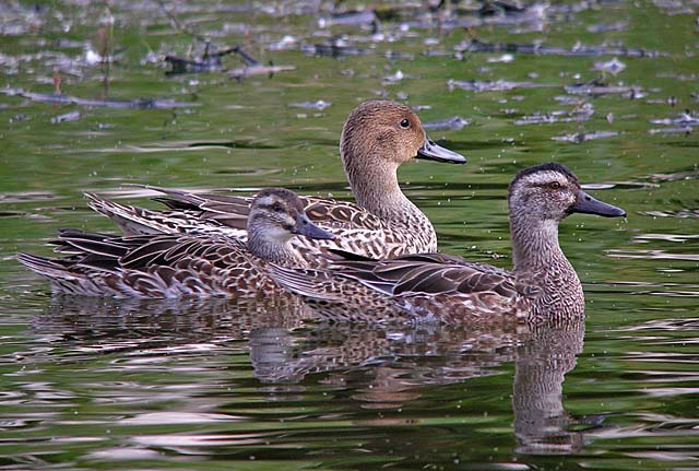 Note also that the bird on the right of the first photo is a male garganey, not yet in breeding plumage. There is an obvious grey feather visible on the flanks and browner feathers moulting into the head pattern.