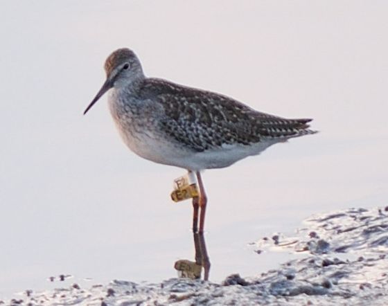 Original posted by ajohn at 4/10/2010 09:43 It's a Common Redshank, flagged at Mai Po on 14 Sept. 2010