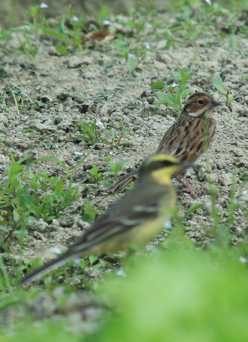 is it a checstnut-eared bunting (behind the yetllow wagtail) ? Thanks!