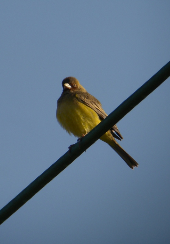 The first bird to show was a fine female Grey Bushchat perched on an overhead wire.  A couple of minutes later a large yellow-bellied bunting landed on another wire - a stunning male Red-headed Bunting!  There are plenty of excellent photos on the Red-headed Bunting page: