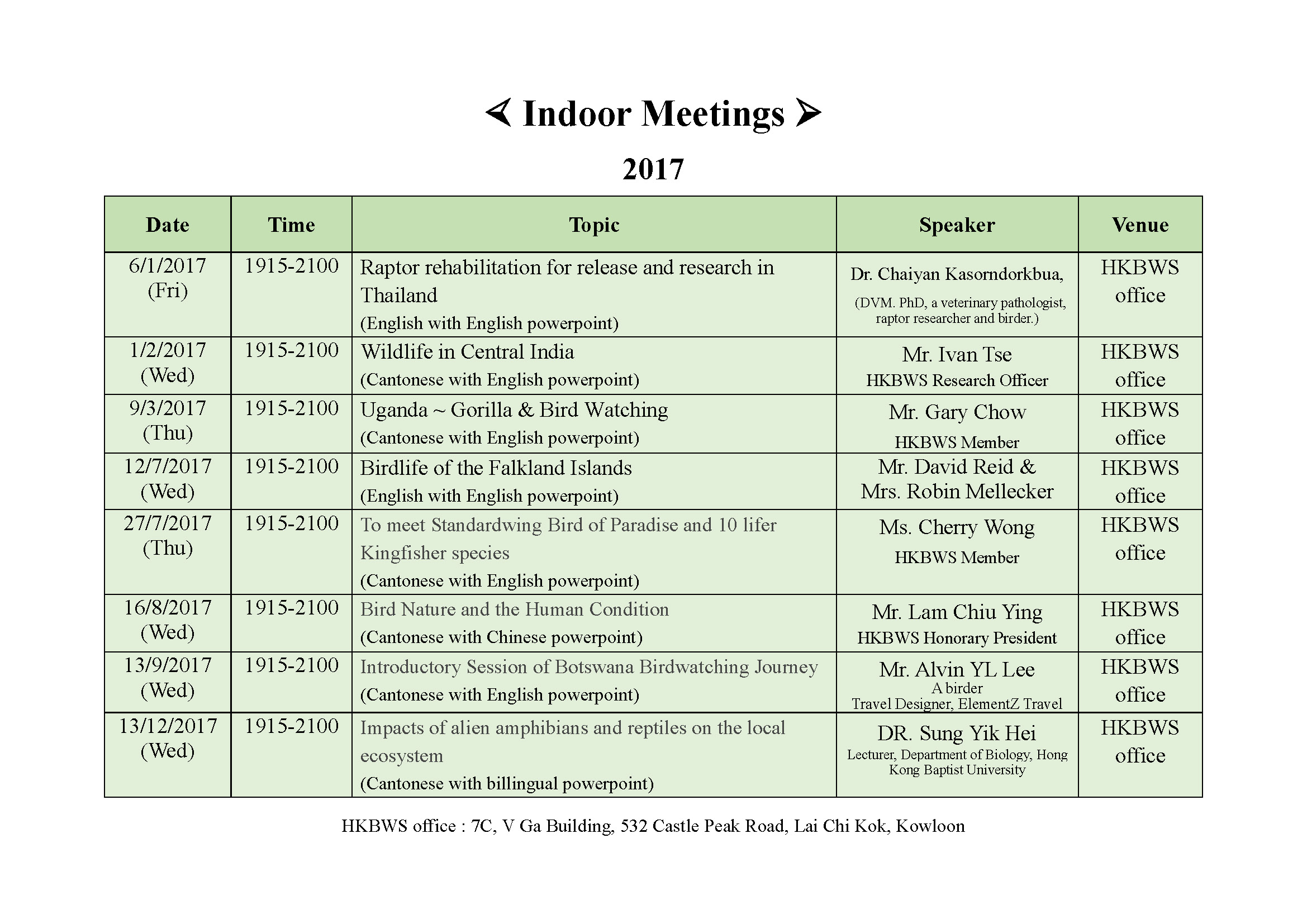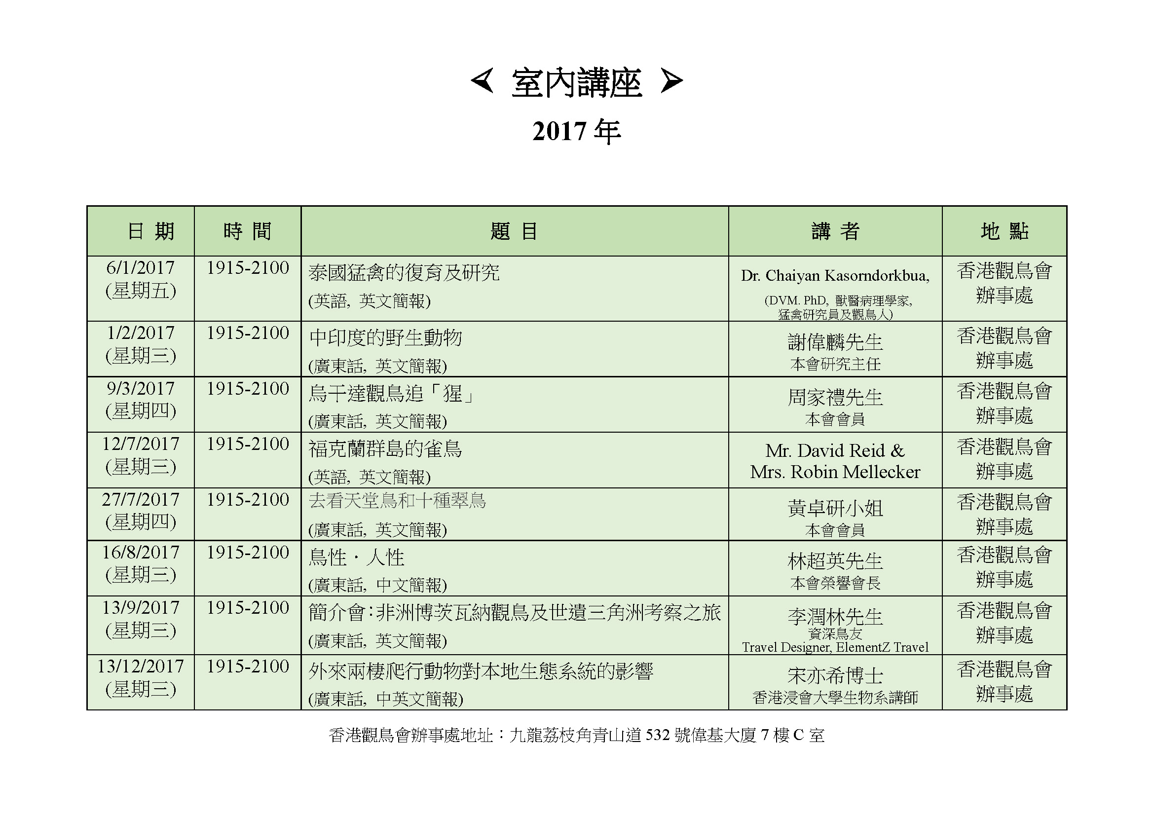 » 2017 室內講座Indoor Meeting