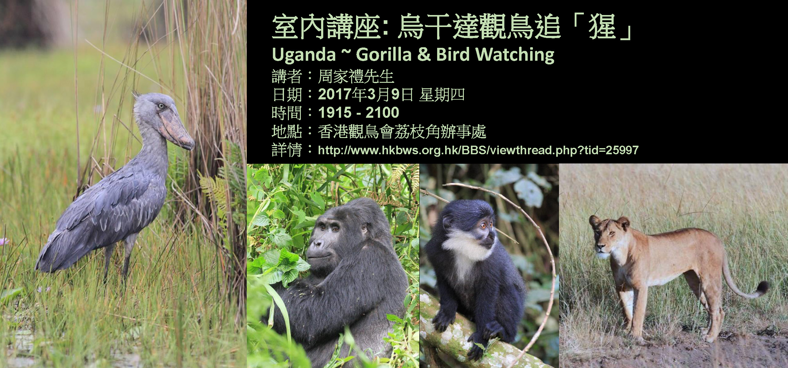 » 9/3/2017室內講座Ind Mtg:烏干達觀鳥追猩Uganda~Gorilla/BirdWatching