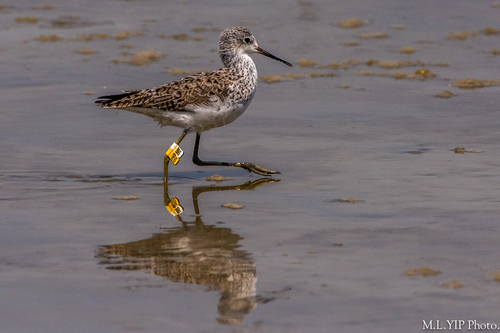 三月二十一日在米埔泥灘上,遇見這隻有足旗的澤鷸. 分享一下.