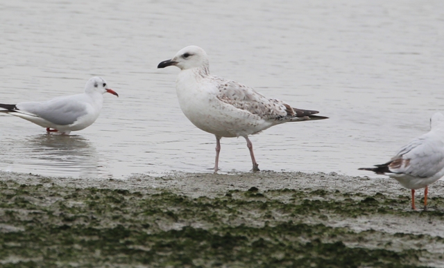 The first one looks really pale, with hardly any streaks on the hind neck, the side of the breast, flanks and on its belly. It is always a good thing when there are other gulls on the same photograph, so you can compare colors. The upperparts look pretty pale as well.