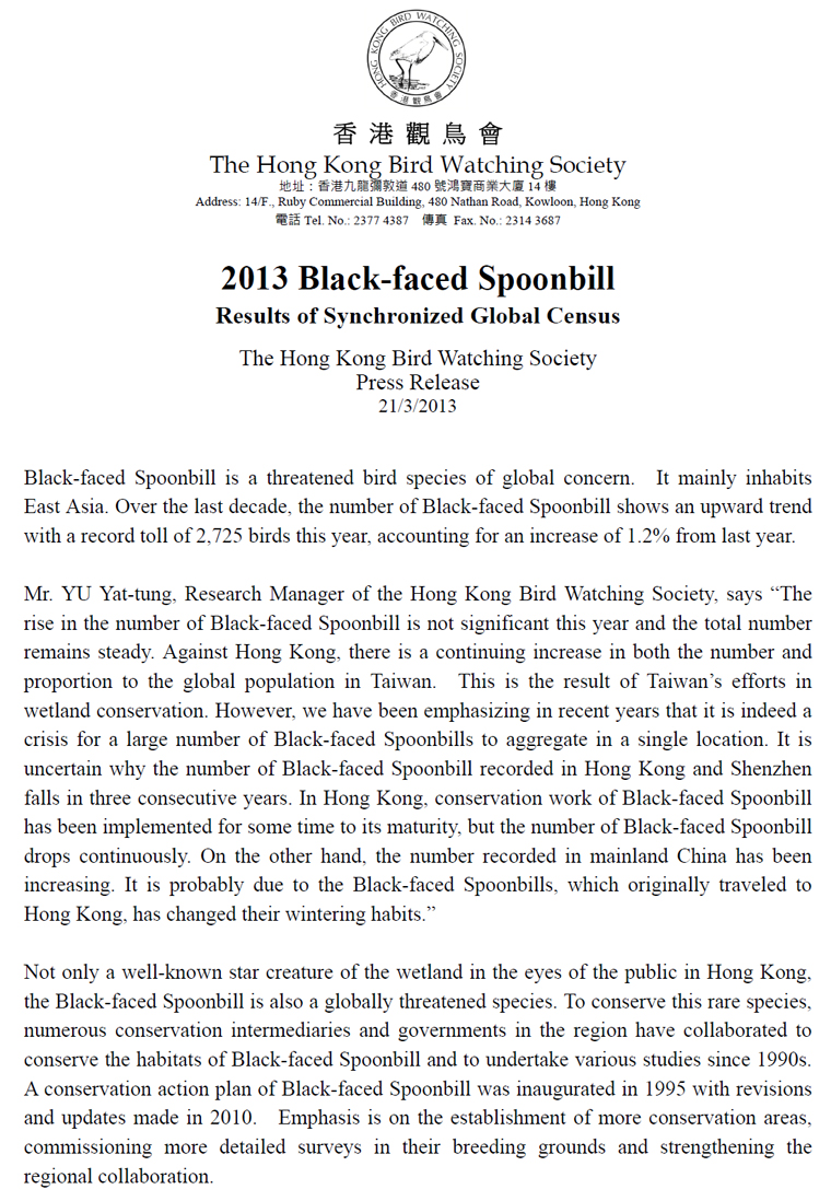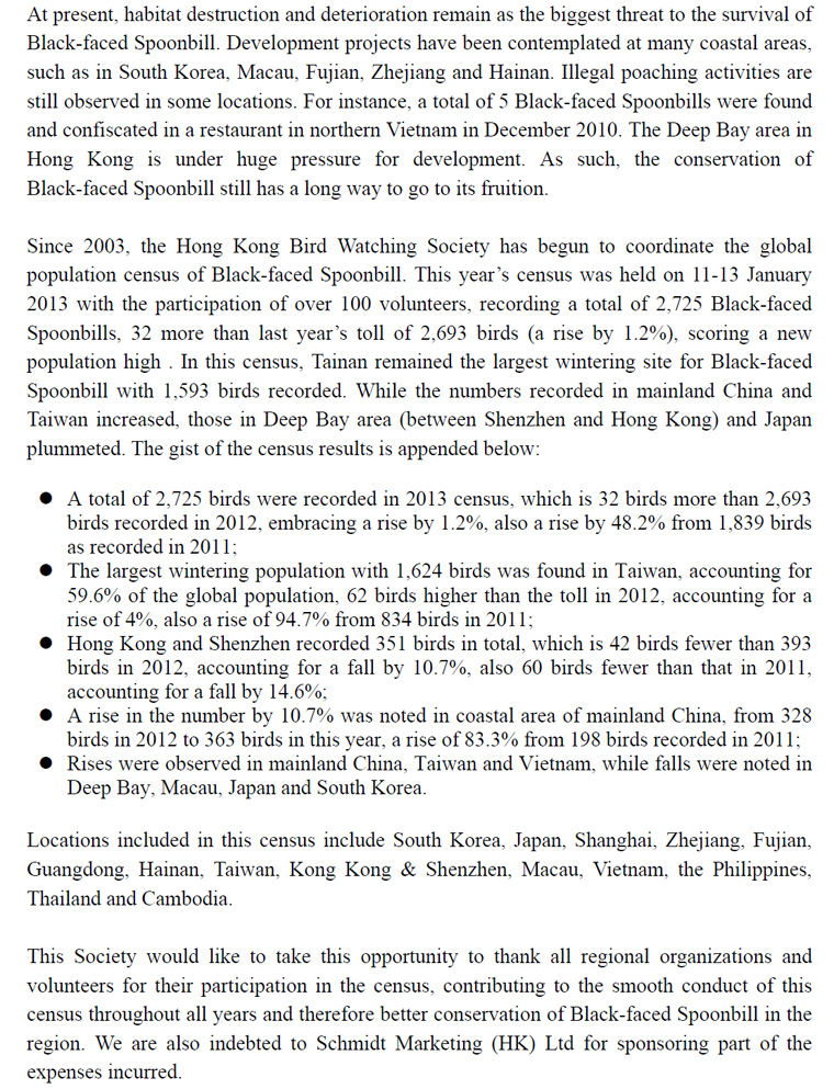 2013 Black-faced Spoonbill Results of Synchronized Global Census