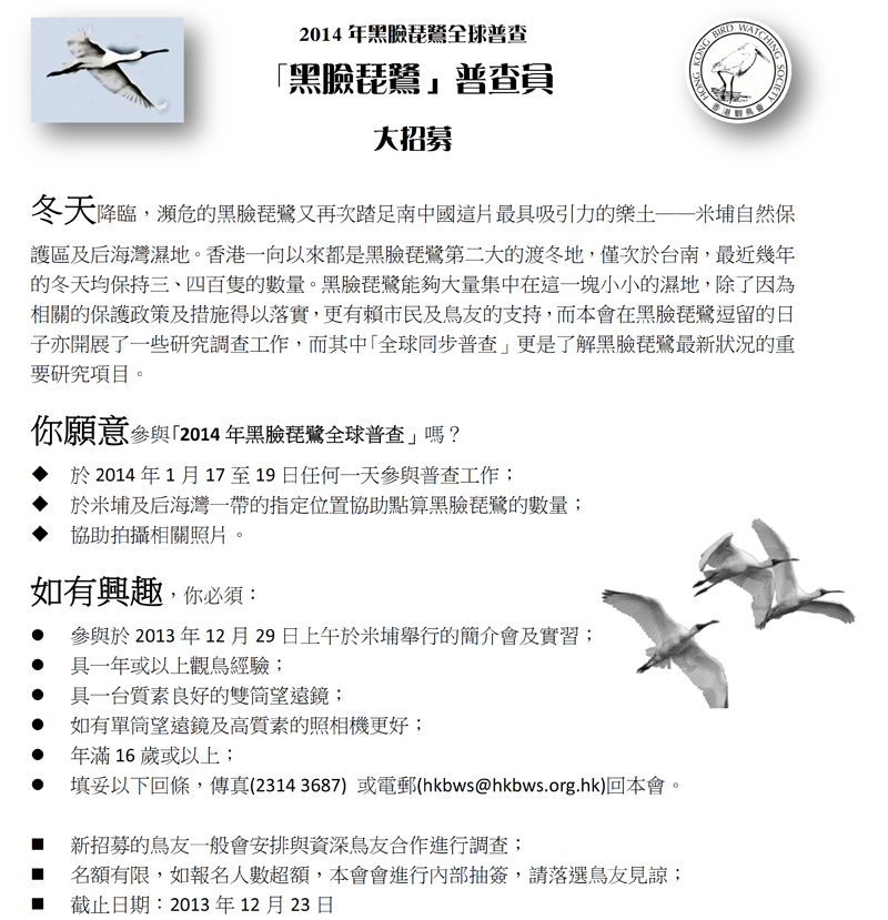 2014年黑臉琵鷺全球普查-「黑臉琵鷺」普查員大招募
