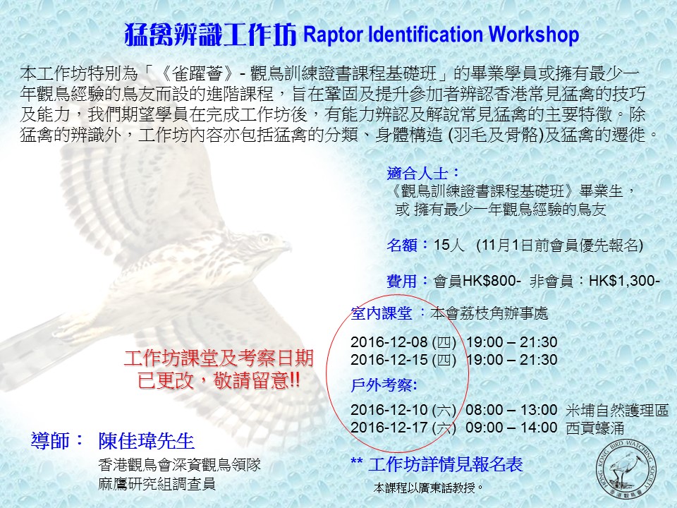 » FULL滿額--猛禽辨識工作坊 2016-12 Raptor Identification Workshop
