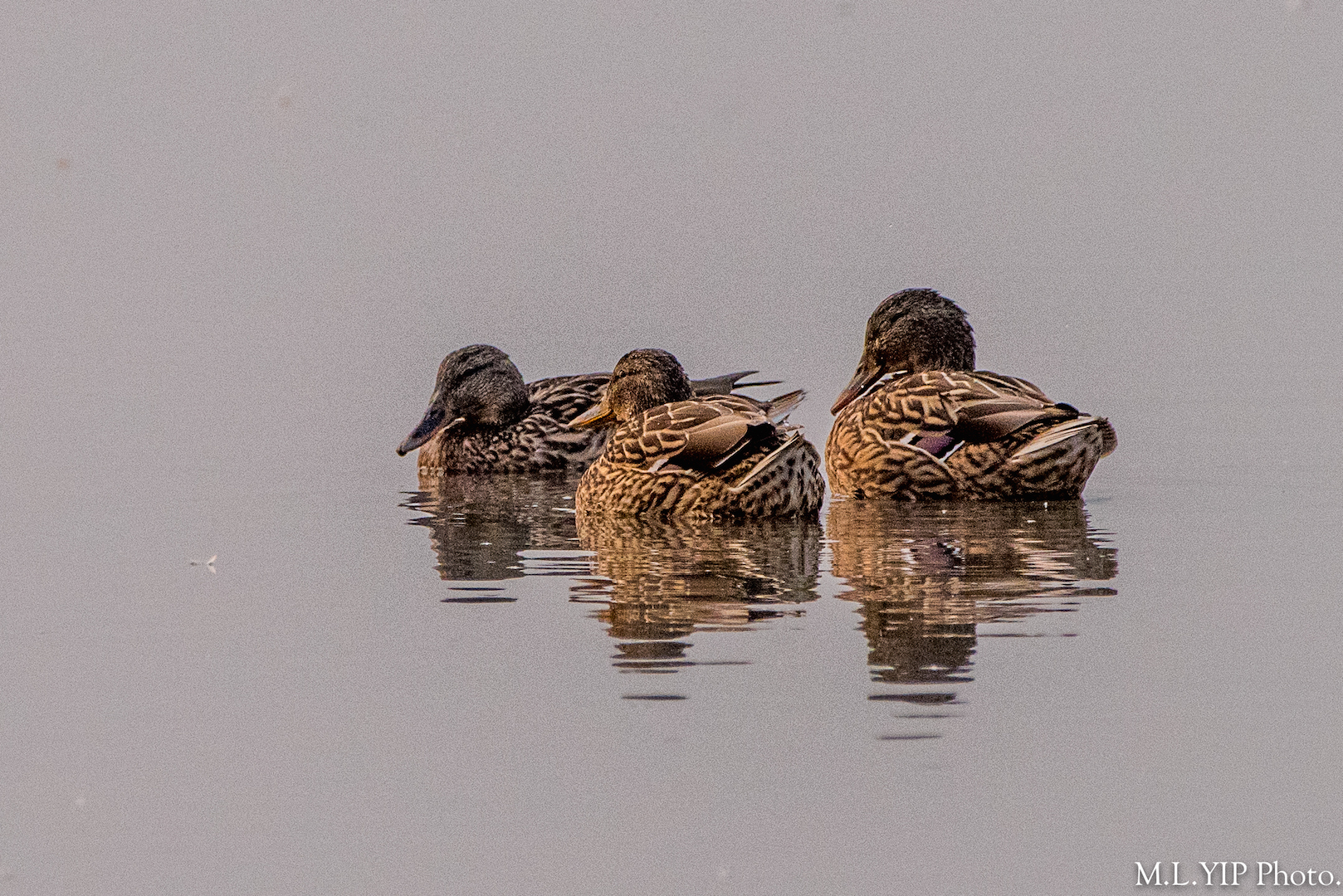估計是三隻雌白眉鴨, 可惜是老遠, 看得不太清楚.