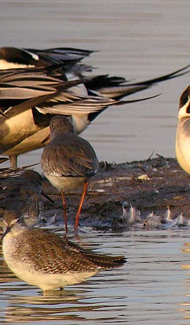 This wader was with a group of Redshanks and I didn't notice it at first. Could it be a Wood Sandpiper? Neil.