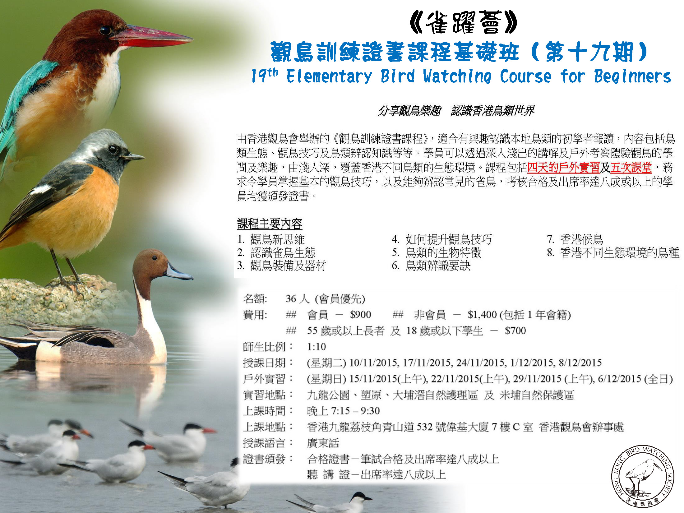 《雀躍薈》觀鳥訓練證書課程基礎班(第十九期) 19th Elementary Bird Watching Course for Beginners