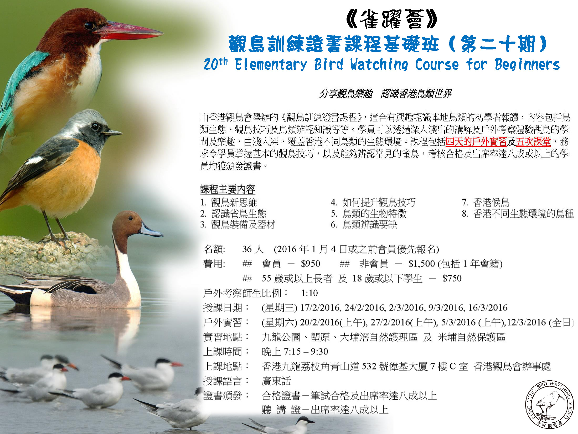 《雀躍薈》觀鳥訓練證書課程基礎班(第二十期) 20th Elementary Bird Watching Course for Beginners