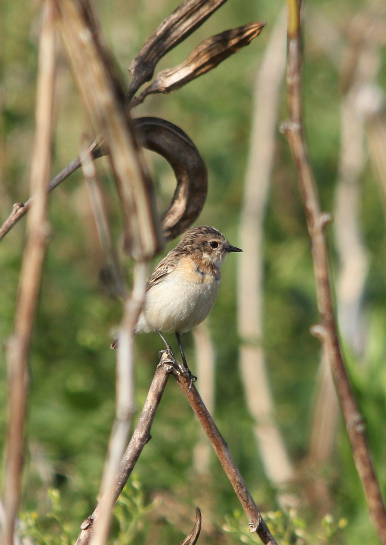 Would appreciate some help in deciding if this is a young Stonechat are the blue feathers coming through around the neck could indicate another species.
