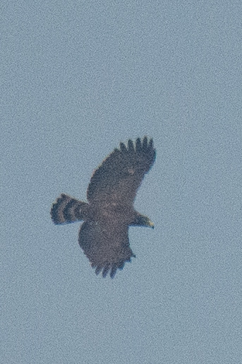 Saw this raptor soaring on the morning of Aug 24th 2019 near the Tung Chung River along with a pair of kites. Kites were smaller than this bird by comparison. At first I thought it might be a crested serpent eagle, but the level wings and number of tail bands seems to suggest it's something else. Any thoughts?
