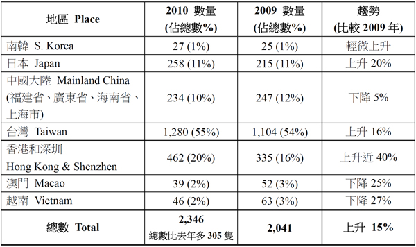 -香港和深圳錄得462隻,比去年335隻增加127隻,上升38%,是香港有史以來的新高;