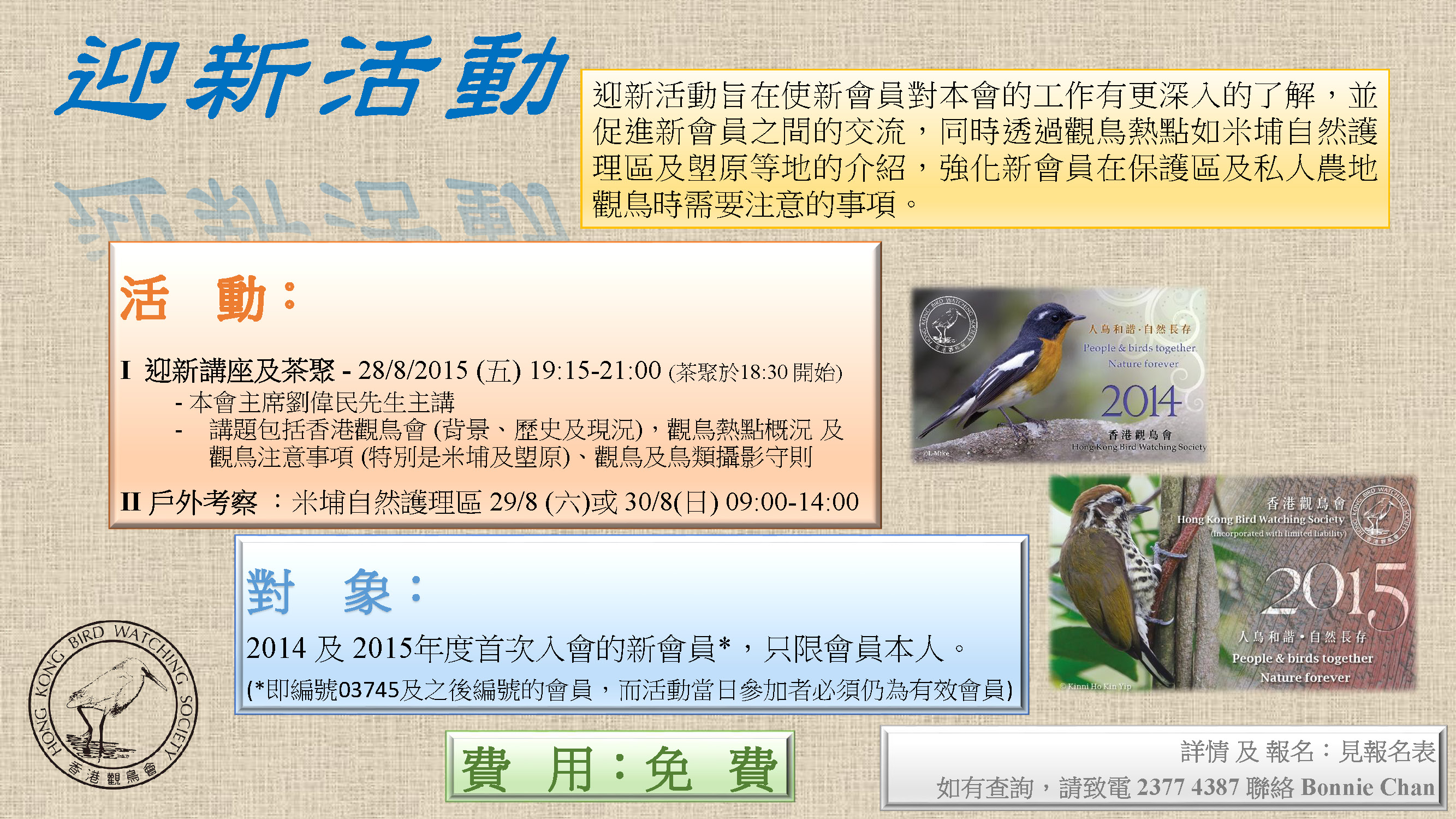 是次迎新活動共28位新會員參加,分別出席了在星期五晚的講座及星期六或日的米埔考察,星期六/日天氣需然不太理想,但無損大家了解米埔的心。