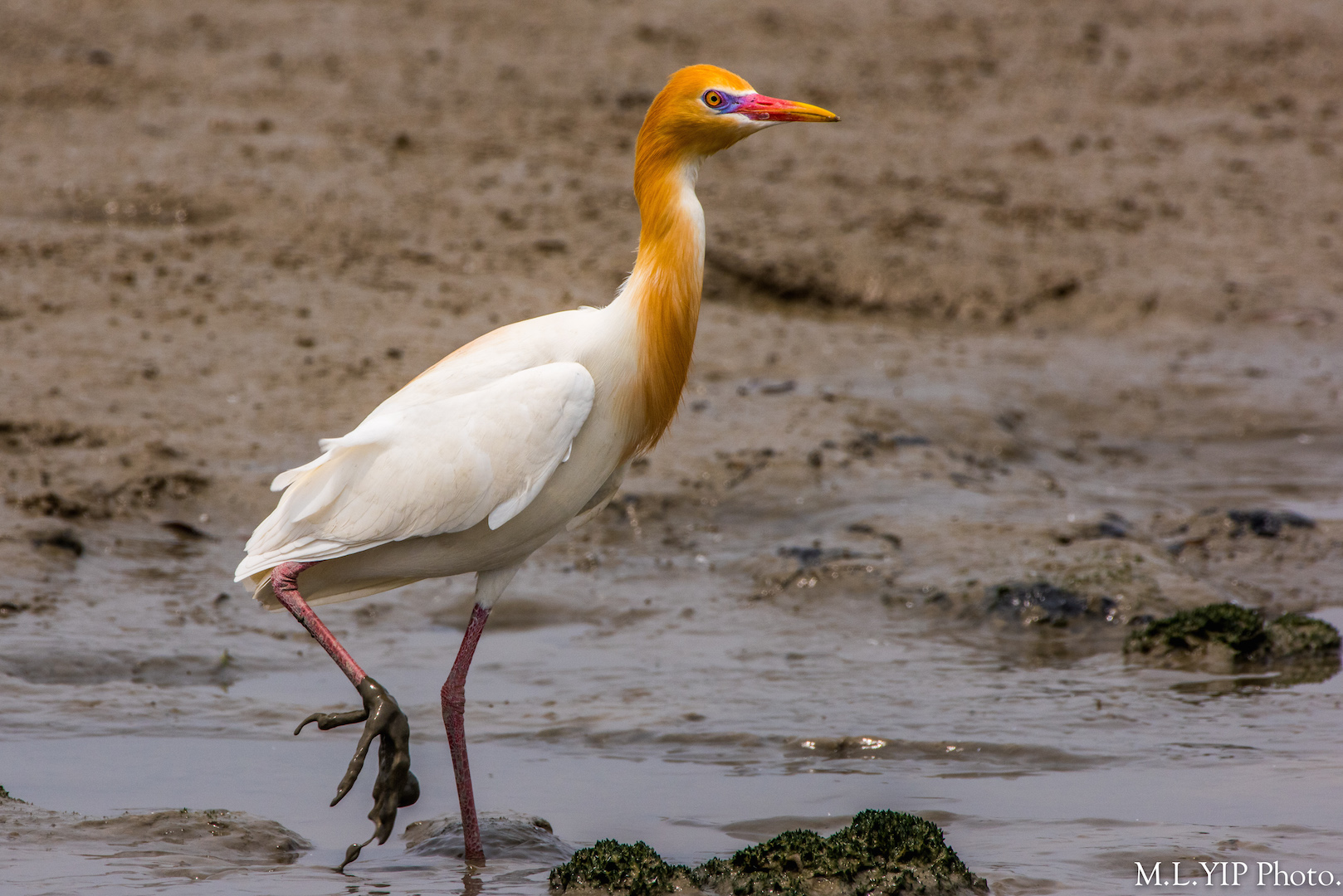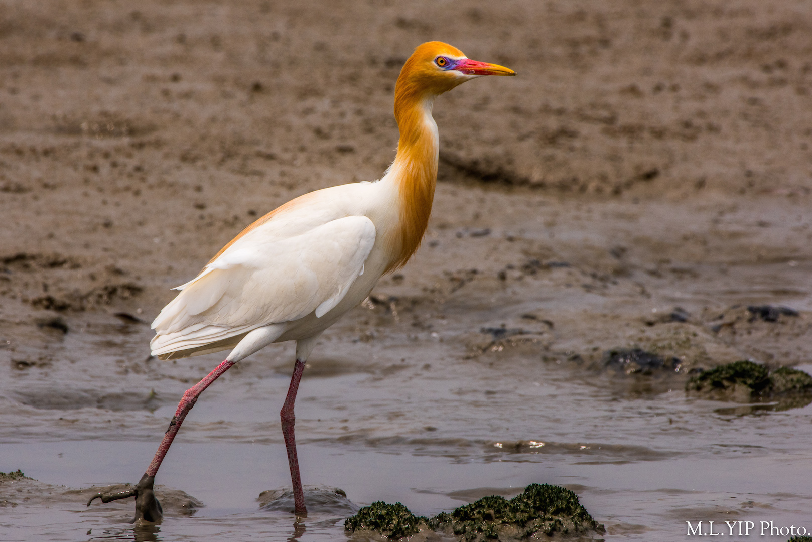 牛背鷺在泥灘上不是常見, 而且這隻牛背鷺色彩鮮明, 是更覺吸引.