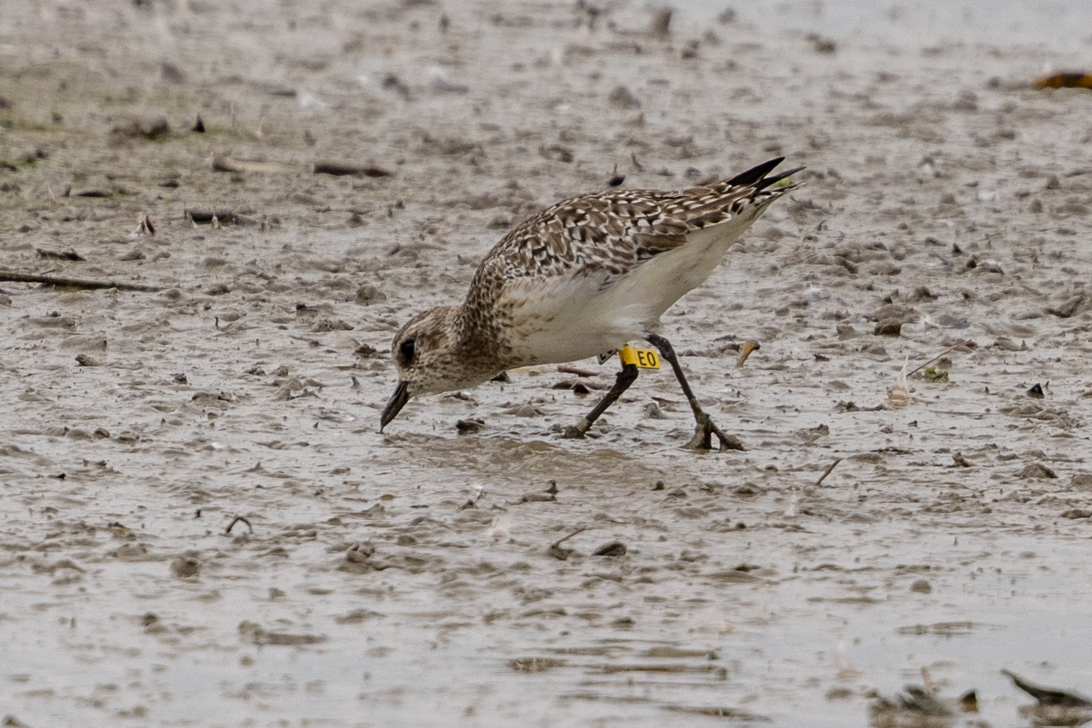 Grey Plover E0 was originally flagged as J8 in Gei wai #11 back in 2012 as an adult. It is now more than 12 years old.