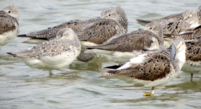 灰尾鷸,注意背上純灰色,脇下有斑馬紋。