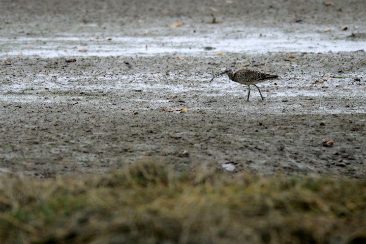 This Eurasian Curlew probed his elongated bill into the mud flats in Maipo in the morning of November 6th.  He picked up arthropods for his breakfast.  His fifteen-centimeter long decurved bill is a gifted weapon that no invertebrates could fight with.
