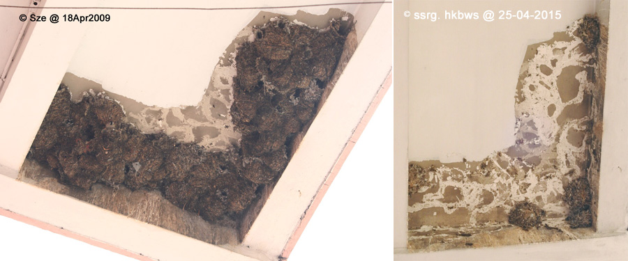 由於雨燕於日間外出覓食,故滅巢舉動未有造成燕群傷亡,卻令三十多隻原居雨燕無家可歸。雨燕群於當日傍晚歸家,發現家園突然消失,悲鳴聲此起彼落。性情固 執念舊的小白腰雨燕未有放棄家園,開始重新在原處築巢,每晚繼續留守空無一物的簷底,用爪死抓簷底牆身休息。現時簷下只剩少許舊巢痕迹,傍晚時分仍有不少 雨燕在簷篷外徘徊,部分掛牆休息,亦有部分以嘴啄着牆身似在築巢,至今只剩下十多隻留守。