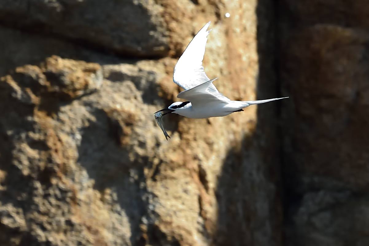 Bridled are still around, I counted 30 this week with 40 the week before. But they go off fishing during the day sometimes, they don't fish around the Rock like Black-naped but go off to the south of Lamma Island where they have a regular fishing ground.