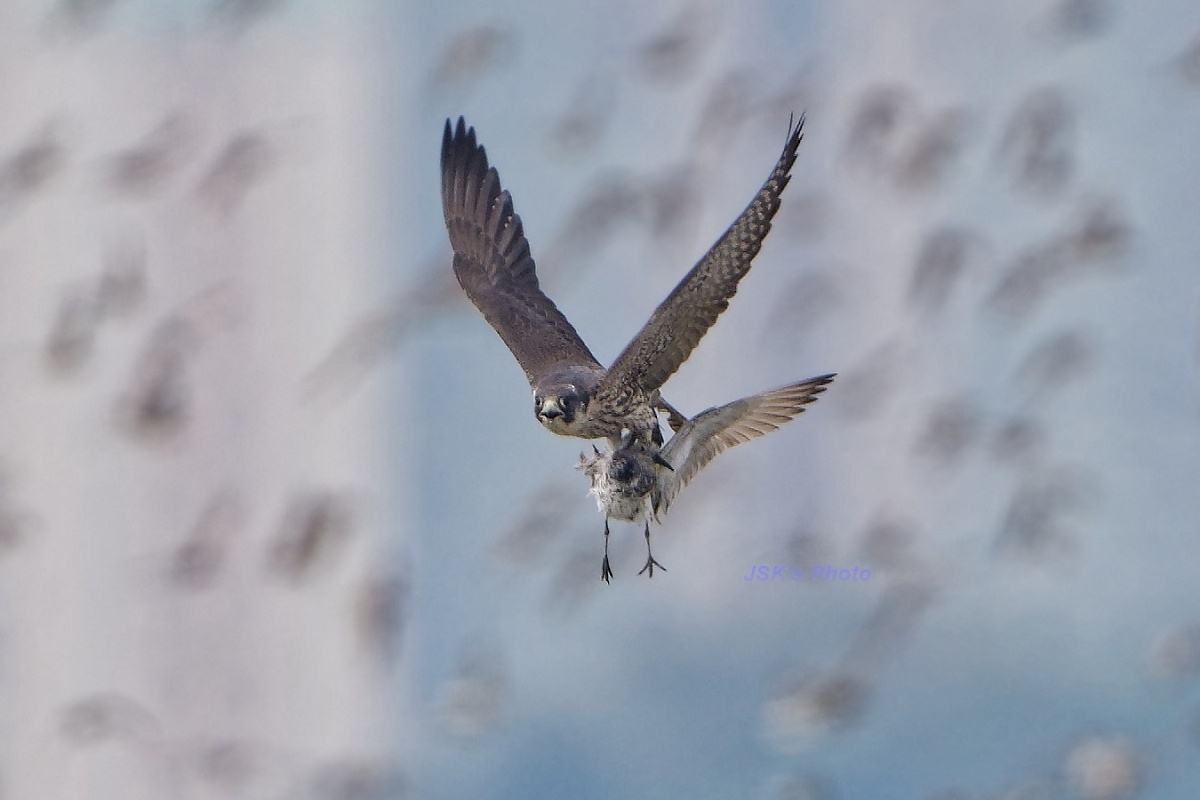 Peregrine Falcon and Great Knot (遊隼與大濱鷸)