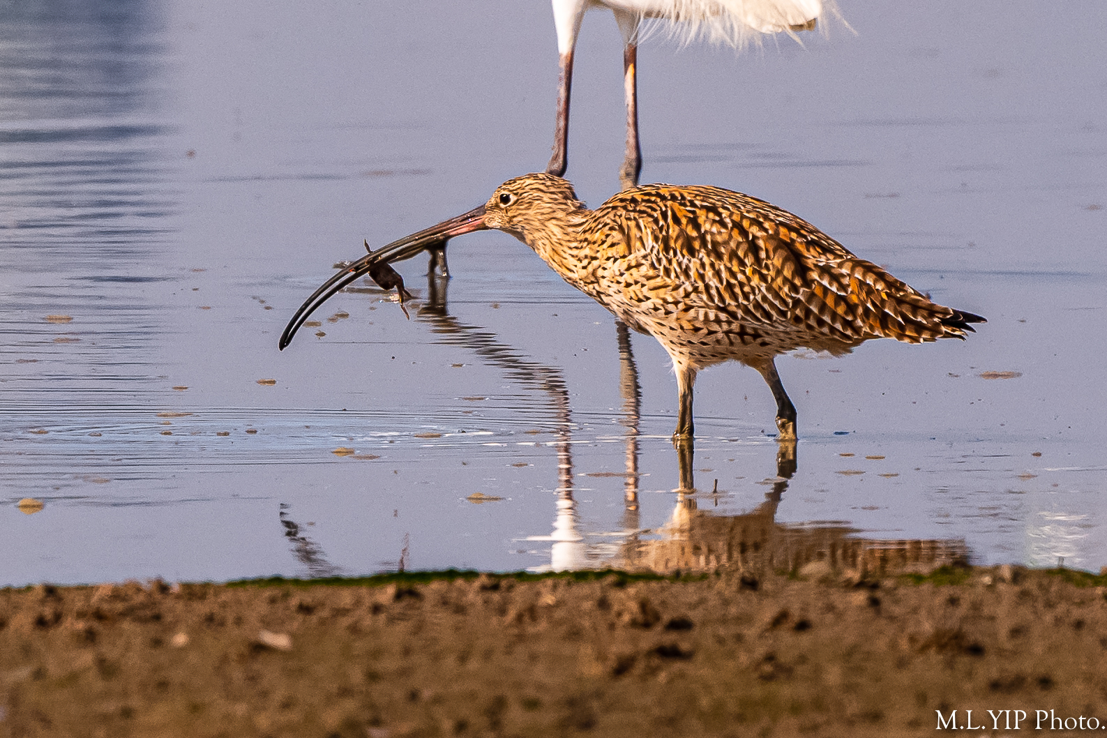 大杓鷸擁有長長嘴巴,可以掘到深處來找獵物,可是進食的時候,就要花點功夫.
