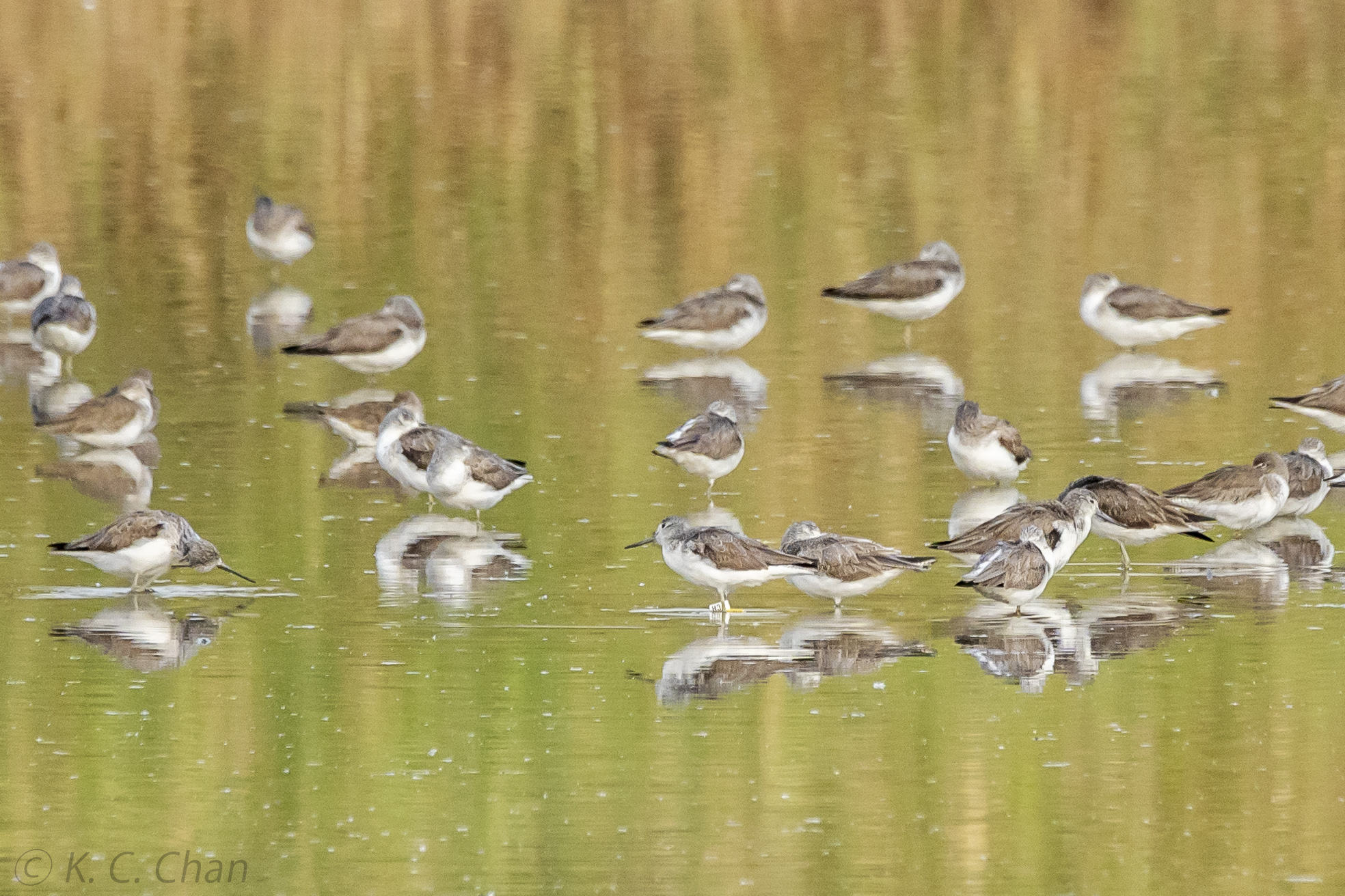 Common Greenshank H3 was ringed on 28-Sep-2022. It was recorded from Sha Kiu in Nov and Dec. 1st report from Mai Po.