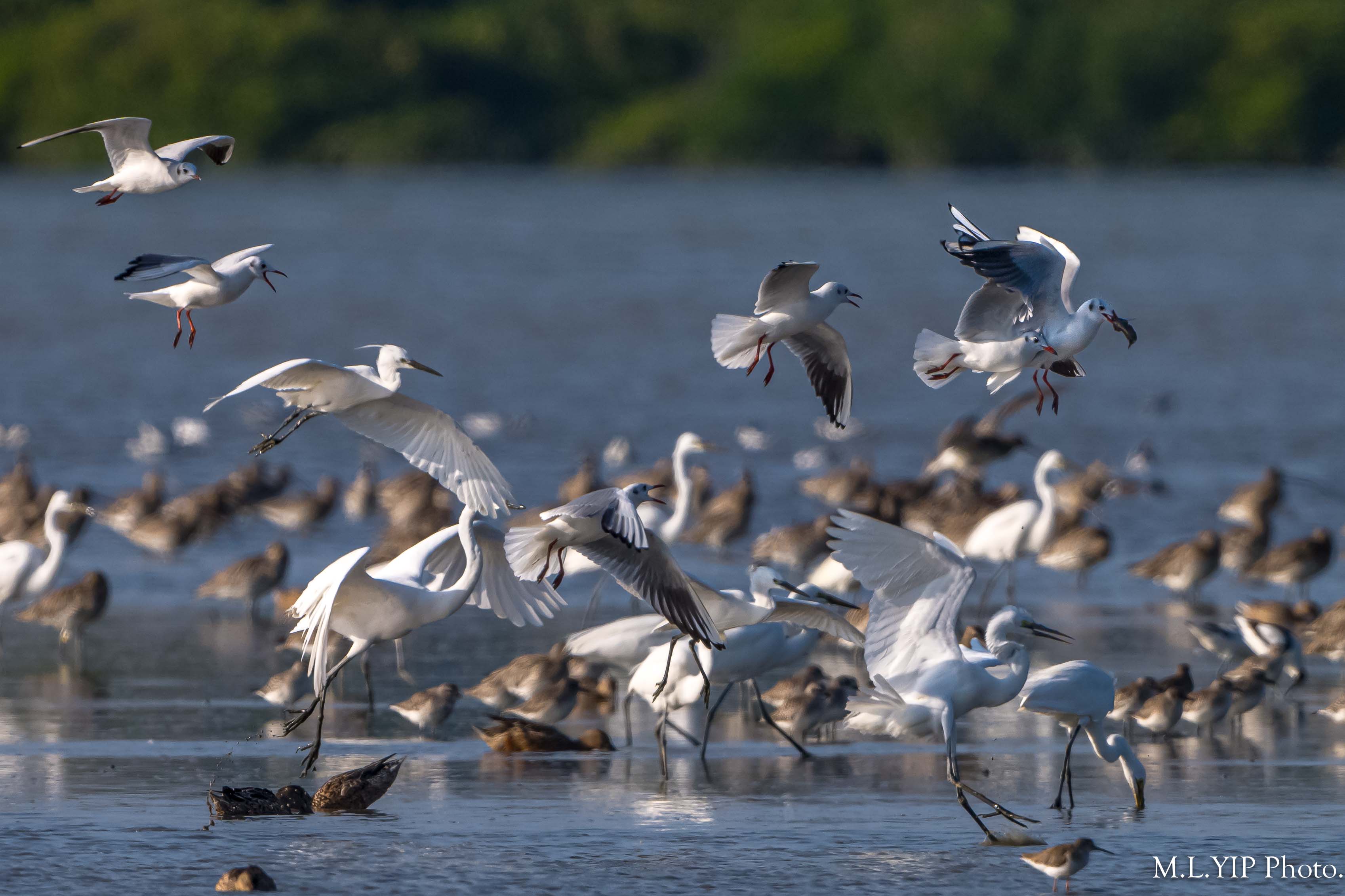 觀察所見,小白鷺嘴中的彈塗魚,最終都被紅嘴鷗搶走了.