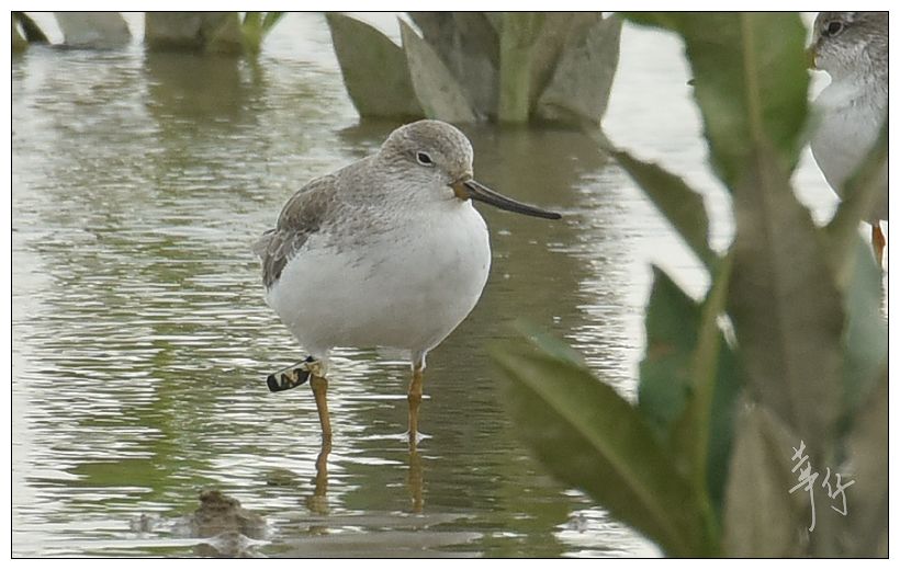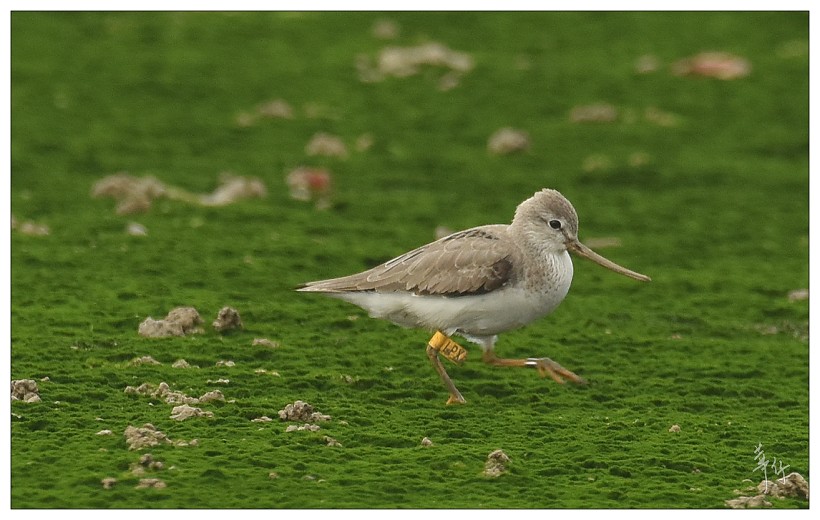 Common Greenshank with two yellow flages, A6