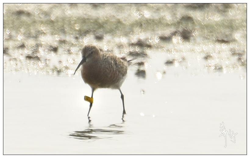 Summer-plumaged Curlew Sandpiper with single yellow flag JLE