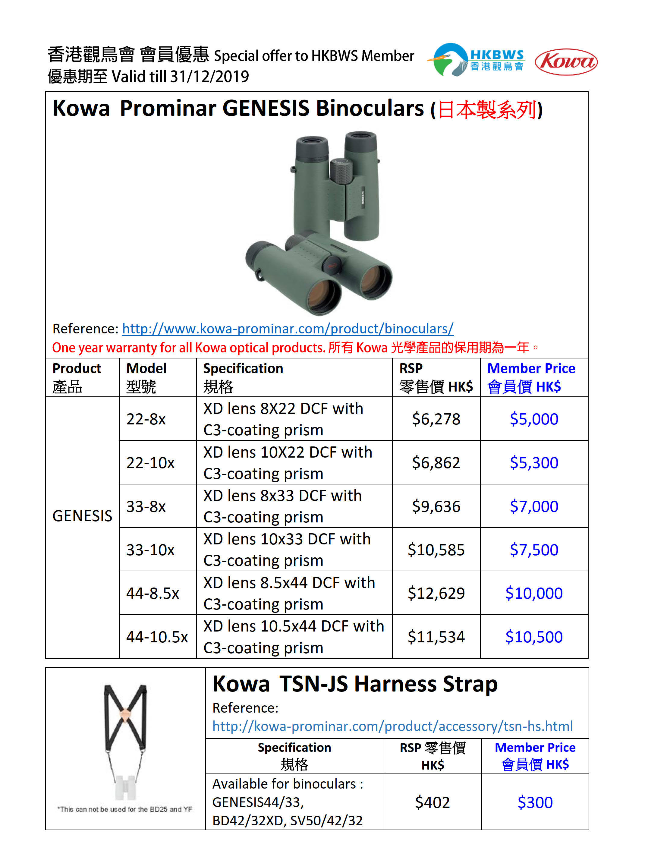 Special Offer of KOWA Binoculars ~ Aug to Dec 2019