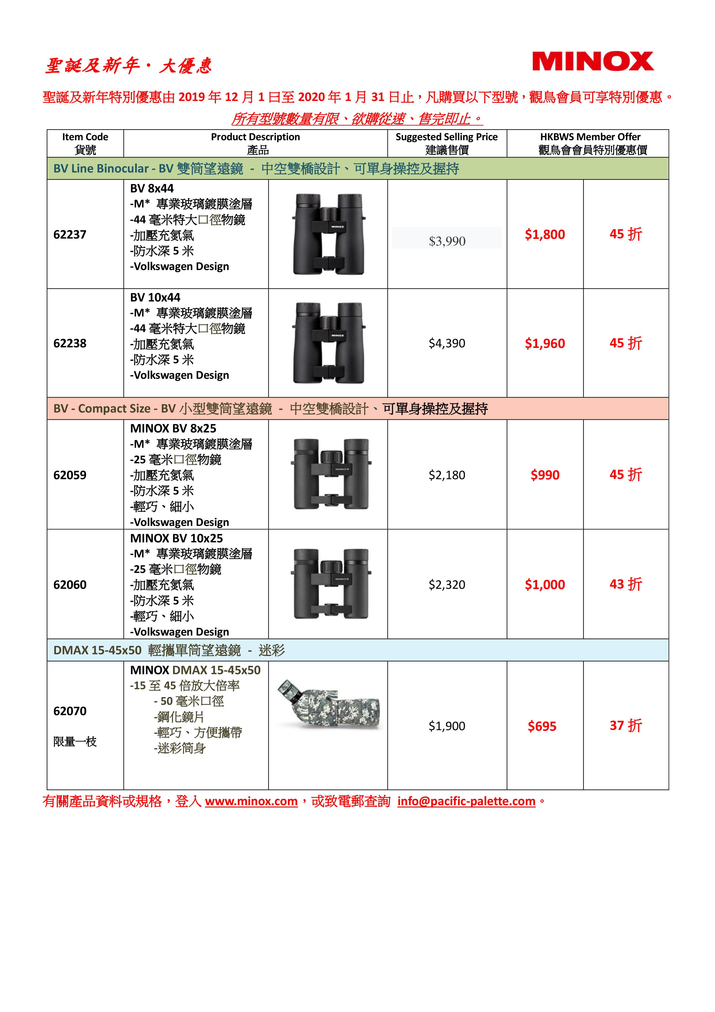 MINOX望遠鏡<節日優惠>01/12/19-31/01/20 MINOX Seasonal Special Offer