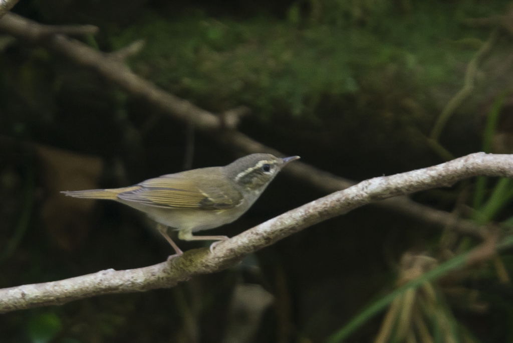Similar to Two-barred Greenish but notice the grey head contrasting with the greenish upperparts. Also darkish bill with pale tip. And pale legs.