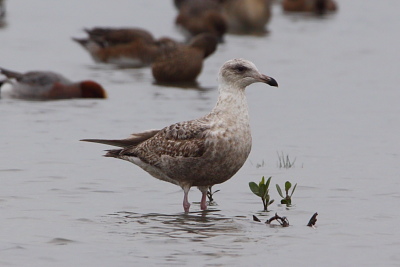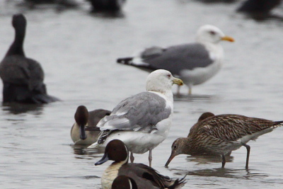 The first bird is a 1y Slaty-backed Gull. Structure, pale head and chest contrasting with dark belly, darkness of upperparts.