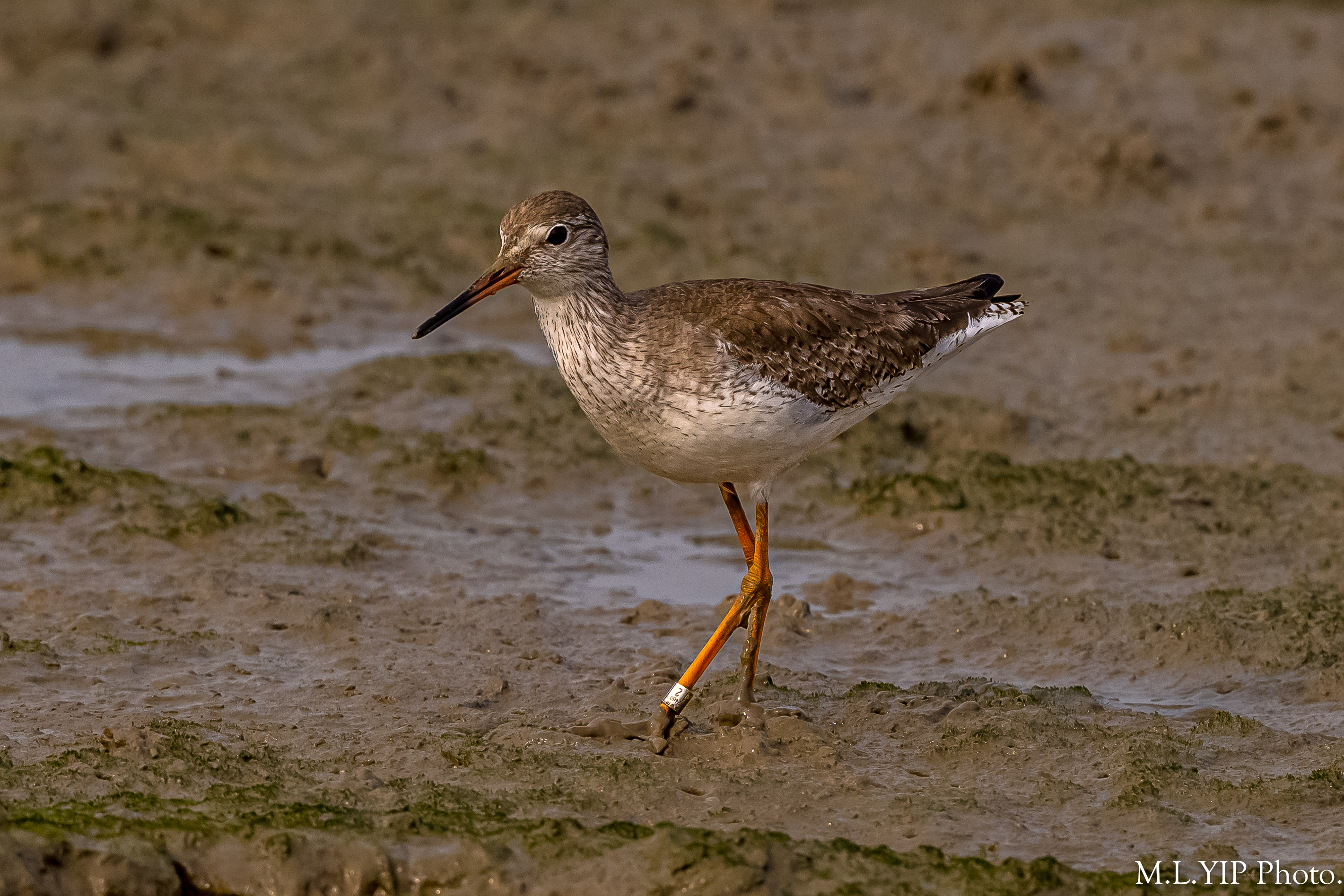 這隻紅腳鷸祇有腳環,卻不見足旗,不知道是否已掙脫掉.