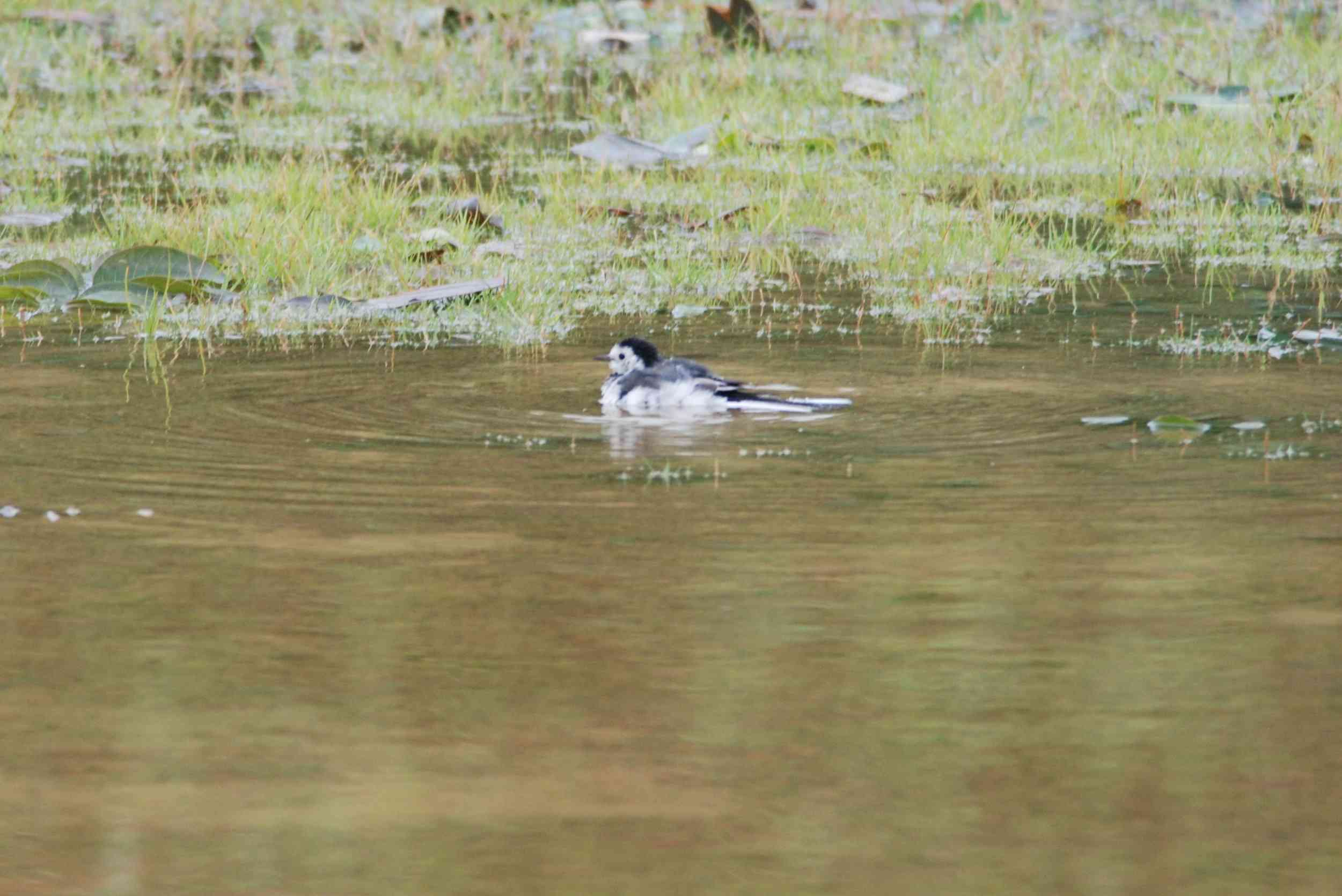 The White Wagtail "took shower" after the typoon and the heavy rain that formed a pond. 2008 Aug 08. Clear Water Bay.