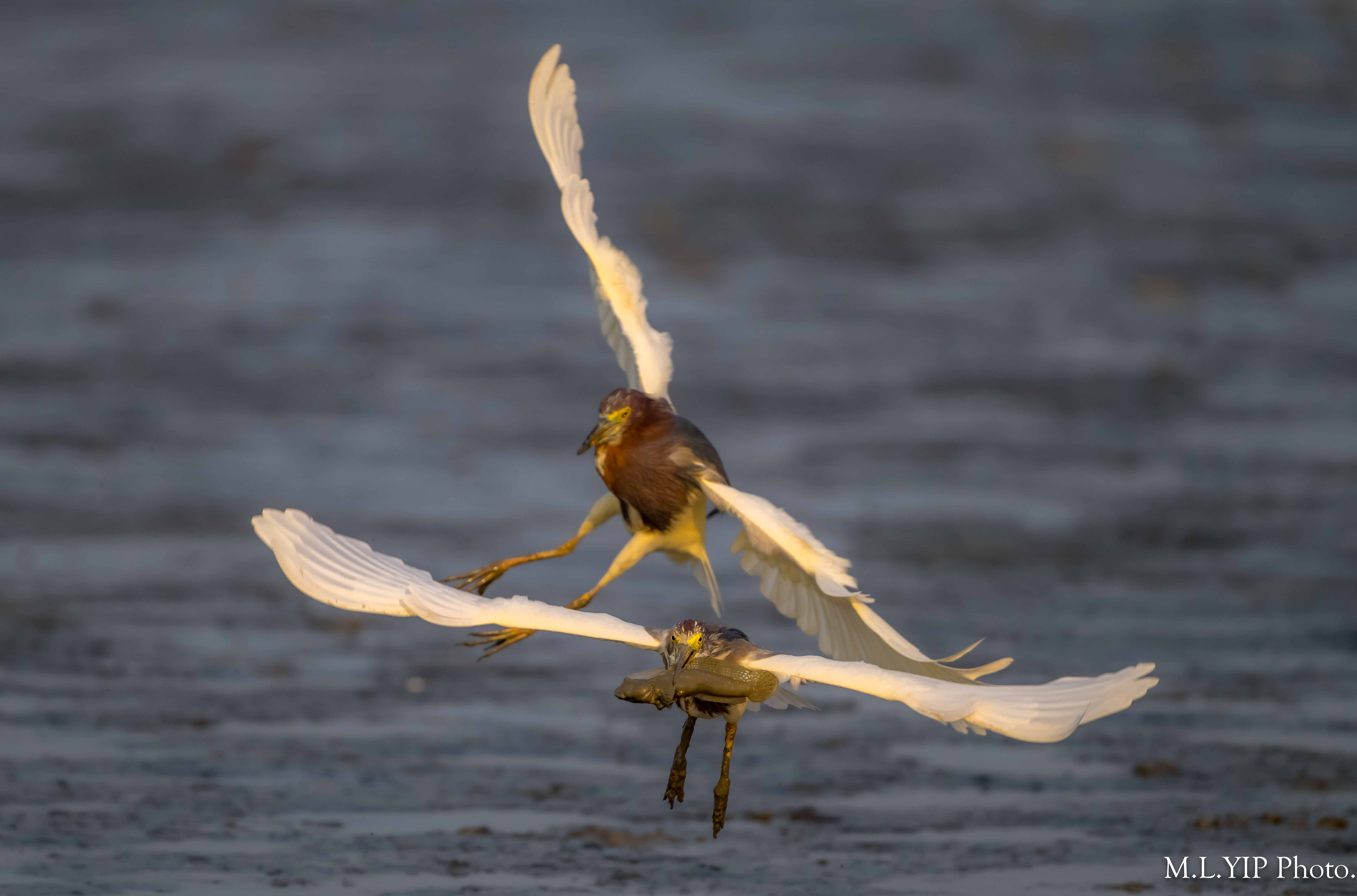 其實池鷺在追逐過程中,早把捕得的彈塗魚吞下.