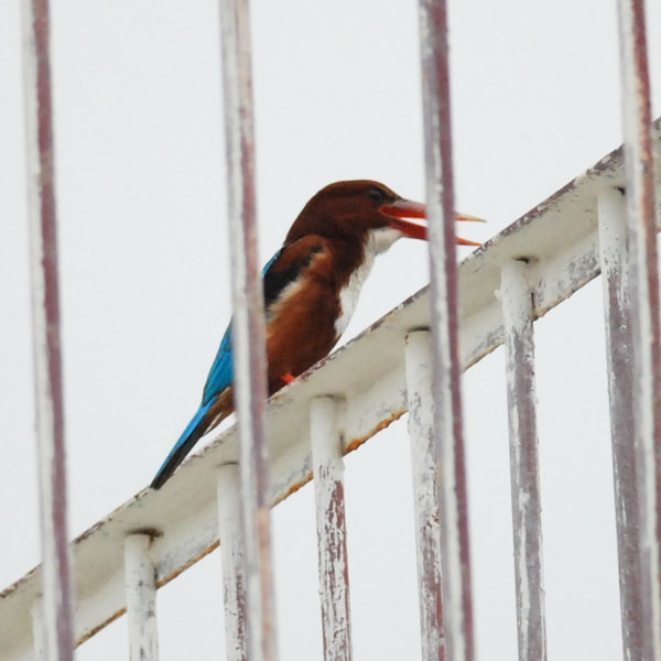 As usual, a pair of White-Breasted Kingfishers nest near my home this summer.