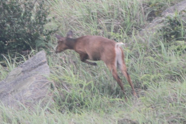 1 Slaty-lagged Crake (heard around 11:00 am in small trees and dense grass about 100 meters down from the peak, strange that it was calling then)