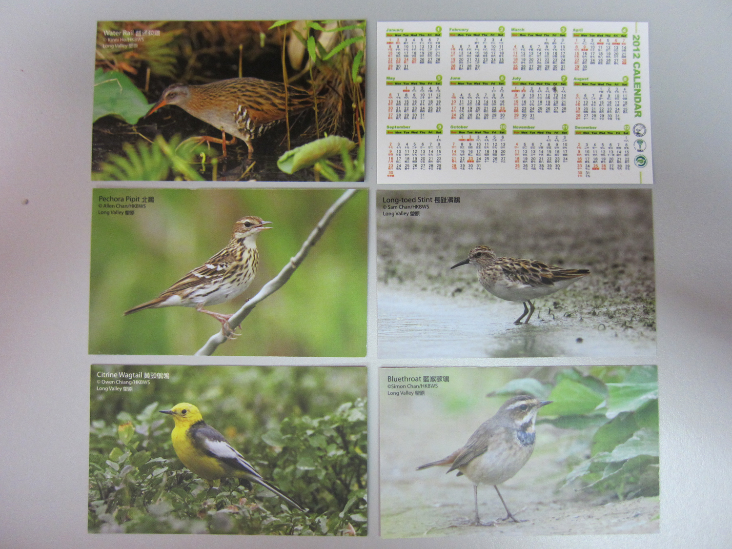 2012年曆咭經已印製好,一共有5款,5種雀鳥都是過去一年在塱原錄的,將會隨續會通知郵寄給各會員(隨機其中一款),希望大家喜歡。