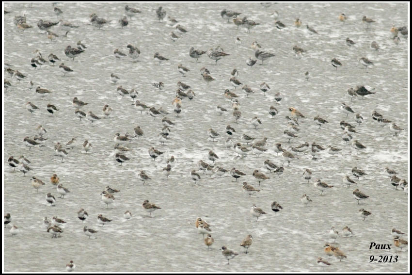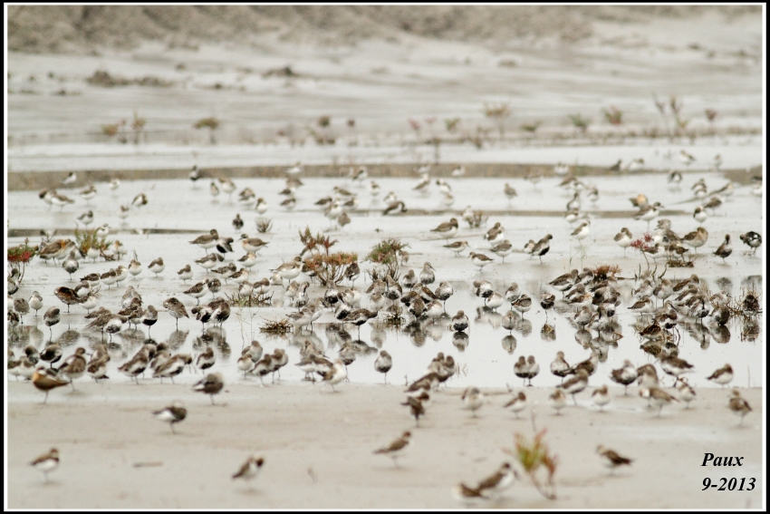 At high tide,the shorebirds will stay in the ponds behind the dam.
