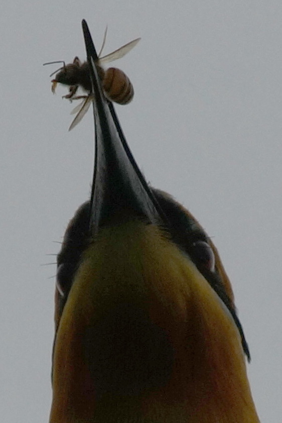 While it's frequently difficult to see what prey they are taking, one can often infer that it is bees/wasps (the name is "Guepier", wasp-catcher, in French in fact) from the way they land, 'juggle' wi ...