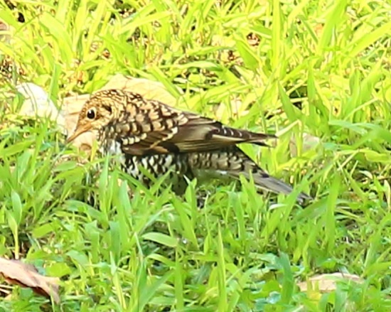 The Avifauna of Hong Kong lists this bird as Scaly Thrush Zoothera dauma. However, the species has since been split into two: Scaly Thrush Zoothera dauma and White's Thrush Zoothera aurea. The bird we get in Hong Kong is White's Thrush Zoothera aurea. This is the name that has been used in the Hong Kong Bird Report since 2007.