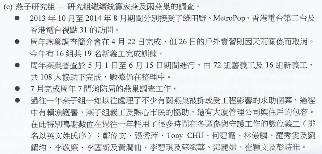 燕子研究組報告事項(會員周年大會主席報告)
