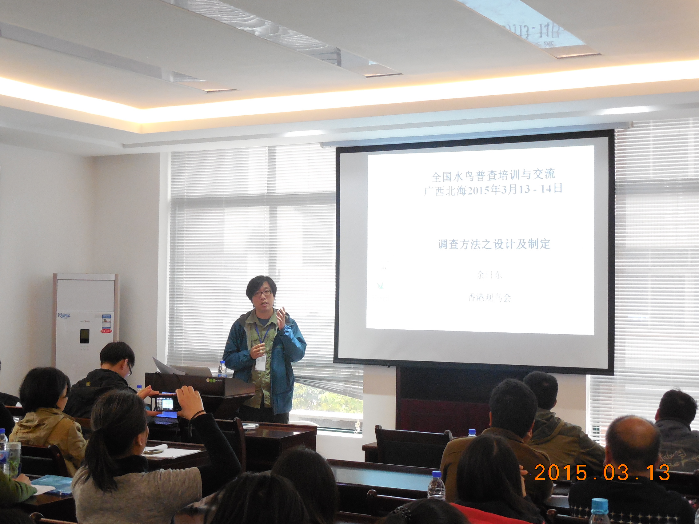 Last weekend (13-14Mar), the first training workshop on bird monitoring in Beihai, Guangxi area was held, under the CEPF funded project “Capacity Building of Local Conservation Groups in Guangdong and Guangxi Provinces, China, to Address Illegal Shorebirds Trapping Problem”. About 40 volunteers and nature reserve staffs from South China region participated.