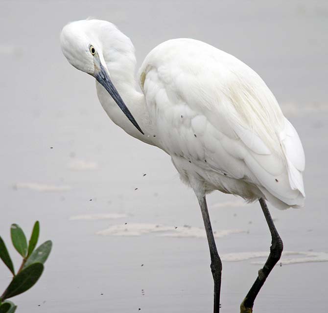 Little Egret covered in flies 小白鷺被蒼蠅圍剿